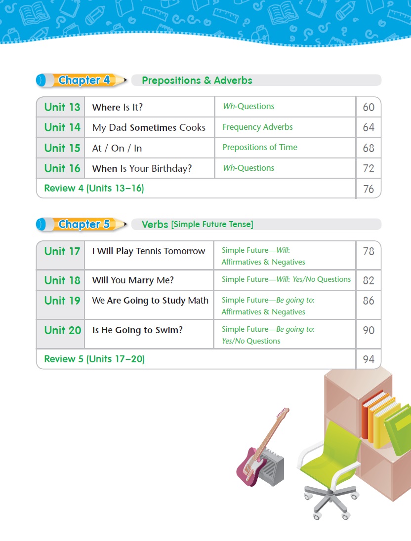 ◆ 每四個單元後均提供一個複習單元,以複習測驗來加強學生文法觀念。
