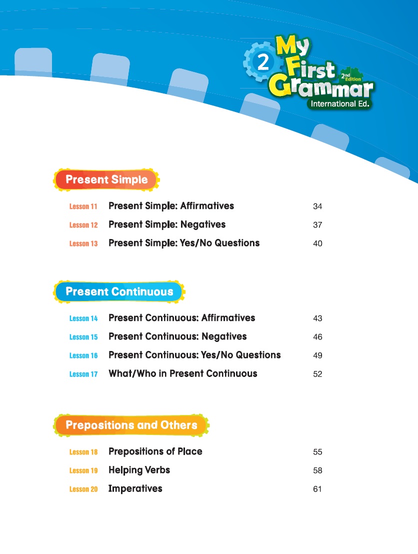 各單元附有淺顯易懂的圖表,標明各項文法學習目標,輔以內容豐富的彩圖、照片及活潑的單元設計,可開啟學生學習興趣。