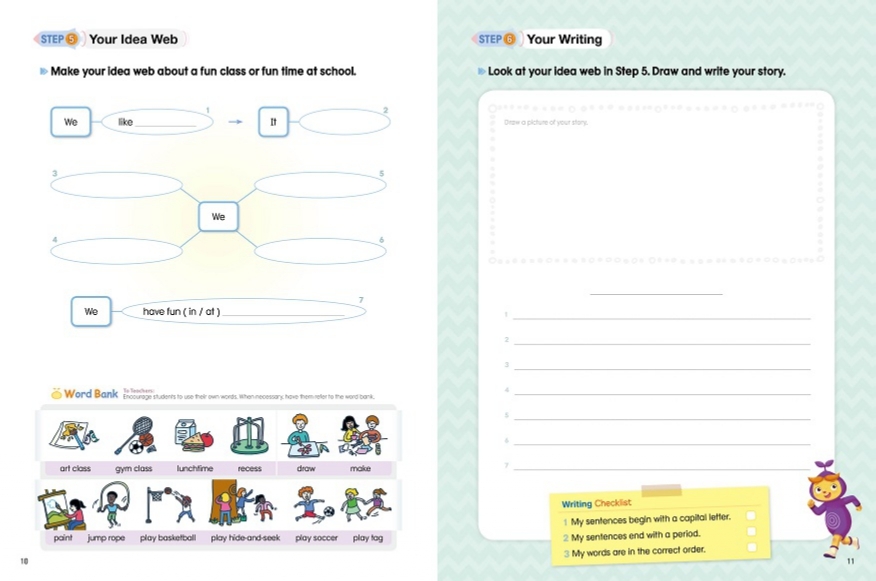 ◆擴展小朋友的學習字彙並建構、提升其句型;藉由強化練習,讓小朋友能加以應用於寫作中。