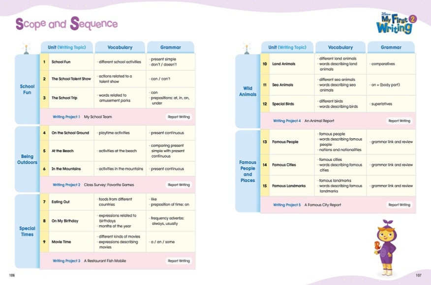 ◆六大步驟,完成段落寫作:1. Warm Up 2. Word Practice 3. Grammar Practice 4. Writing Practice 5. Your Idea Web 6. Your Writing 根據以上步驟,配合自己的想法畫出來,小朋友就能寫出屬於自己的主題性段落文章;將整本書的文章集合起來,自己就是位小作家喔。