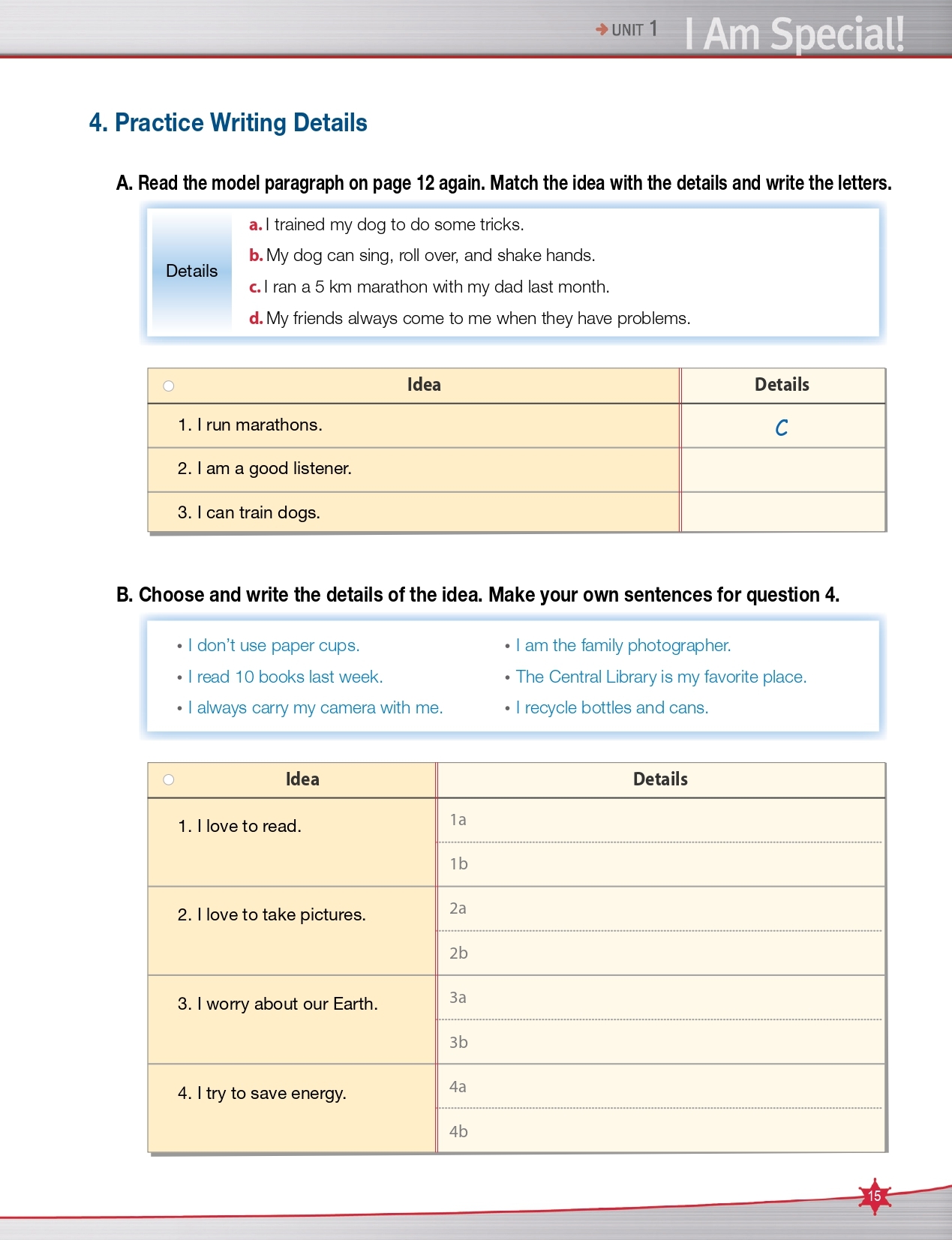 在第二冊及第三冊,學生可以運用他們自己的想法寫出整篇短文及文章。