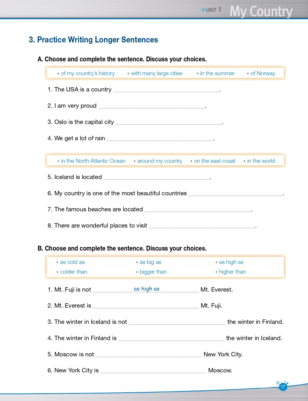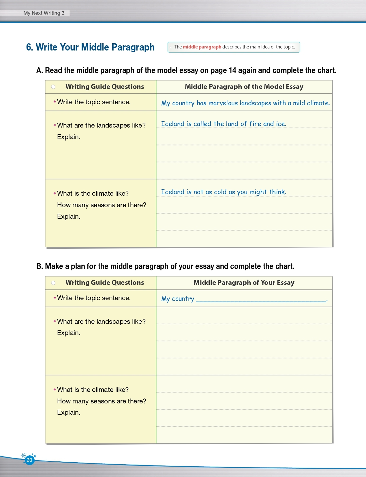 My Next Writing是繼My First Writing的寫作教材。 本系列是教導學生學會文章寫作的各種技巧。 在第一冊,學生透過主題句型寫出一段完整的段落; 在第二冊及第三冊,學生可以運用他們自己的想法寫出整篇短文及文章。 透過範例文章有循序漸進地引導他們寫出完整文章,本系列涵蓋廣泛的主題,讓學生可以充分練習寫作技巧。