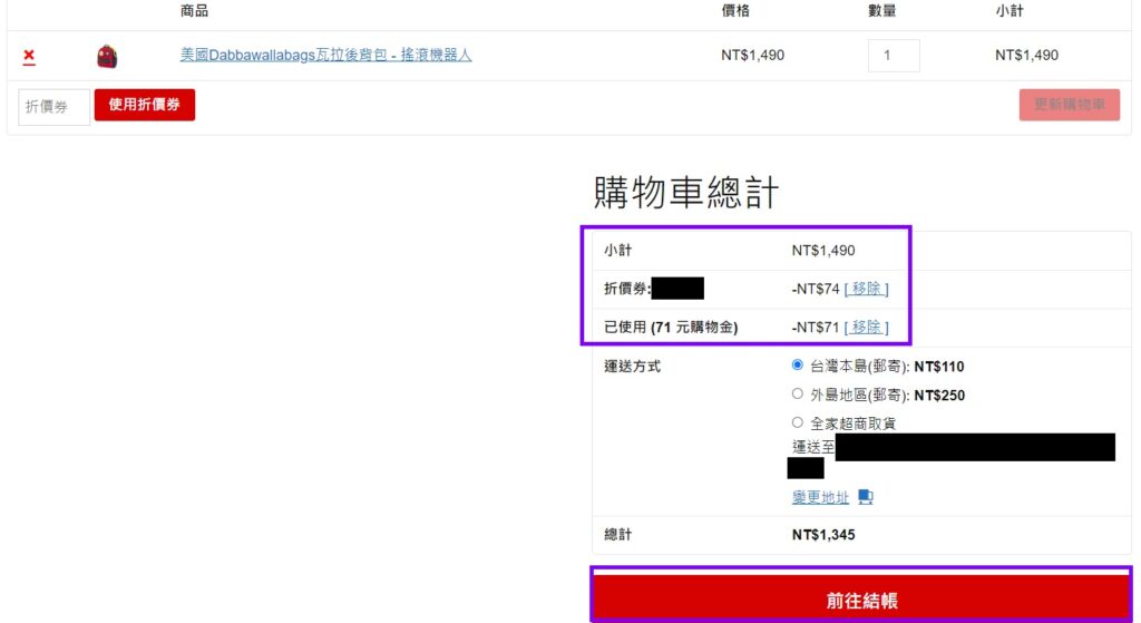 ※結帳時購物車系統會自動為您計算當筆交易可折抵的金額,若您「不想使用購物金」則「不要」點使用購物金的按鍵